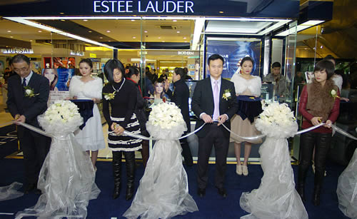 國芳百貨領(lǐng)導(dǎo)及雅詩蘭黛公司領(lǐng)導(dǎo)為雅詩蘭黛開業(yè)剪彩