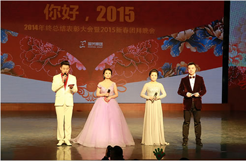 2015年2月9日晚,在蘭州37中(蘭州女子專業(yè)中等?茖W(xué)校)5樓藝術(shù)廳內(nèi),國(guó)芳集團(tuán)“你好,2015”2014年終總結(jié)表彰大會(huì)暨2015年新年盛典溫馨開演。恰逢國(guó)芳集團(tuán)成立十五周年,晚會(huì)現(xiàn)場(chǎng)充滿了溫馨、喜慶和感動(dòng)。晚會(huì)延用了去年的大型LED顯示屏、多組VCR、微信平臺(tái)等廣受好評(píng)的元素,并創(chuàng)新的融入了中華名族傳統(tǒng)的禮儀文化,漢唐古典舞的壯觀優(yōu)美,員工孩子們《弟子規(guī)》的可愛表演,都在為晚會(huì)添加了精彩度的同時(shí),將傳承禮儀所需要的高尚美德這一思想深入的傳達(dá)到每一位員工的心中。員工們精心準(zhǔn)備的節(jié)目一個(gè)比一個(gè)精彩,極具藝術(shù)表現(xiàn)力和觀賞性,董事長(zhǎng)也被熱烈的氣氛所感染,親自上臺(tái)演唱了兩首歌曲,把晚會(huì)推向了高潮。最后,國(guó)芳集團(tuán)年終晚會(huì)在祥和熱烈的氣氛中落下了帷幕。讓我們共同期待來年的精彩!