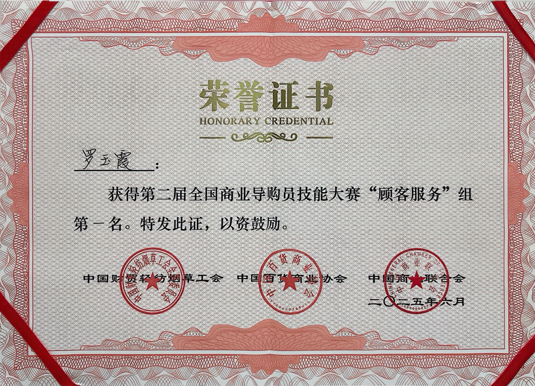 2025年6月5日—6日,由中國財貿輕紡煙草工會、中國百貨商業(yè)協(xié)會、中國商業(yè)聯(lián)合會、重慶市總工會共同舉辦的“第二屆商業(yè)導購員技能大賽”決賽在重慶舉行。通過企業(yè)層層選拔、線上展示、專家初評,60位選手從全國523名參賽選手中脫穎而出,在決賽現場展開激烈的服務技藝比拼角逐,蘭州國芳百貨員工代表羅玉霞參與并榮獲“顧客服務”組第一名。