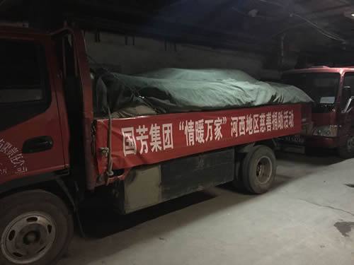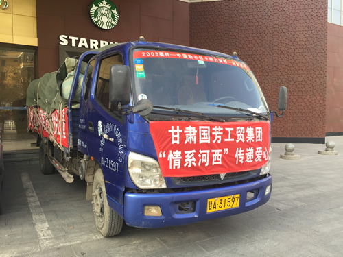 2016年12月12日,甘肅省慈善總會、武威市民政局?jǐn)y甘肅國芳工貿(mào)(集團(tuán))股份有限公司共同舉行“情暖萬家”送溫暖活動,將100萬元資金以及價值100萬元的過冬棉服帶給天?h岔口驛敬老院的老人們。當(dāng)日下午,甘肅省慈善總會與甘肅國芳工貿(mào)(集團(tuán))股份有限公司的各位愛心人士又馬不停蹄的趕赴張掖為當(dāng)?shù)氐墓鹿牙先藥チ?60萬元資金以及價值250余萬元的過冬衣物及被褥。此次活動傳導(dǎo)社會幫扶、精準(zhǔn)扶貧精神的同時也默默為社會傳導(dǎo)著一份正能量。
